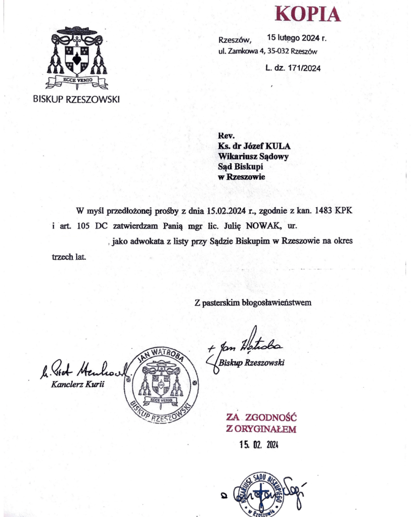 Od 2023 r. reprezentuję Klientów w procesach przed sądami kościelnymi w takich miastach jak m.in. Rzeszów, Przemyśl, Katowice, Sosnowiec.